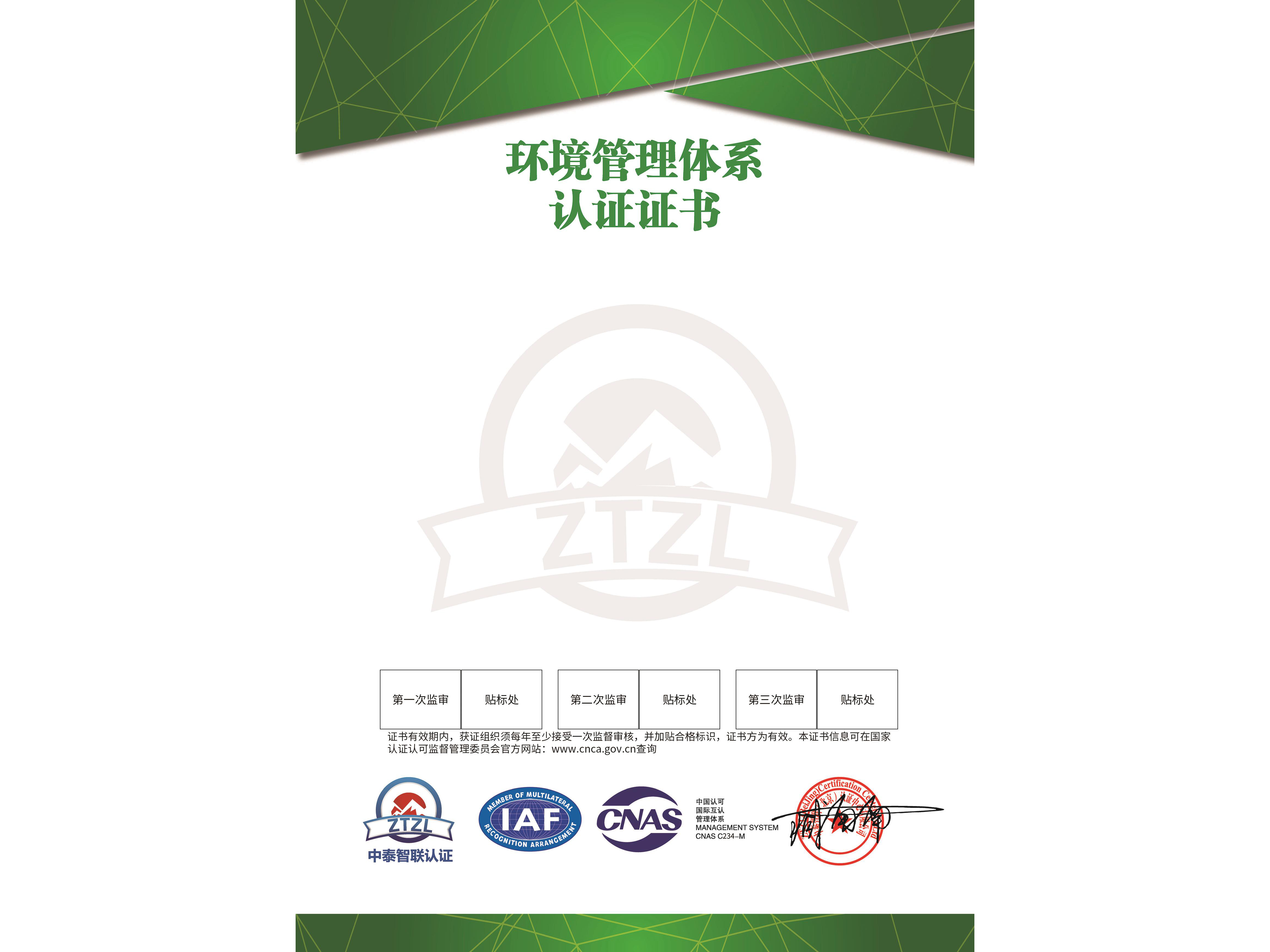环境管理体系认证证书