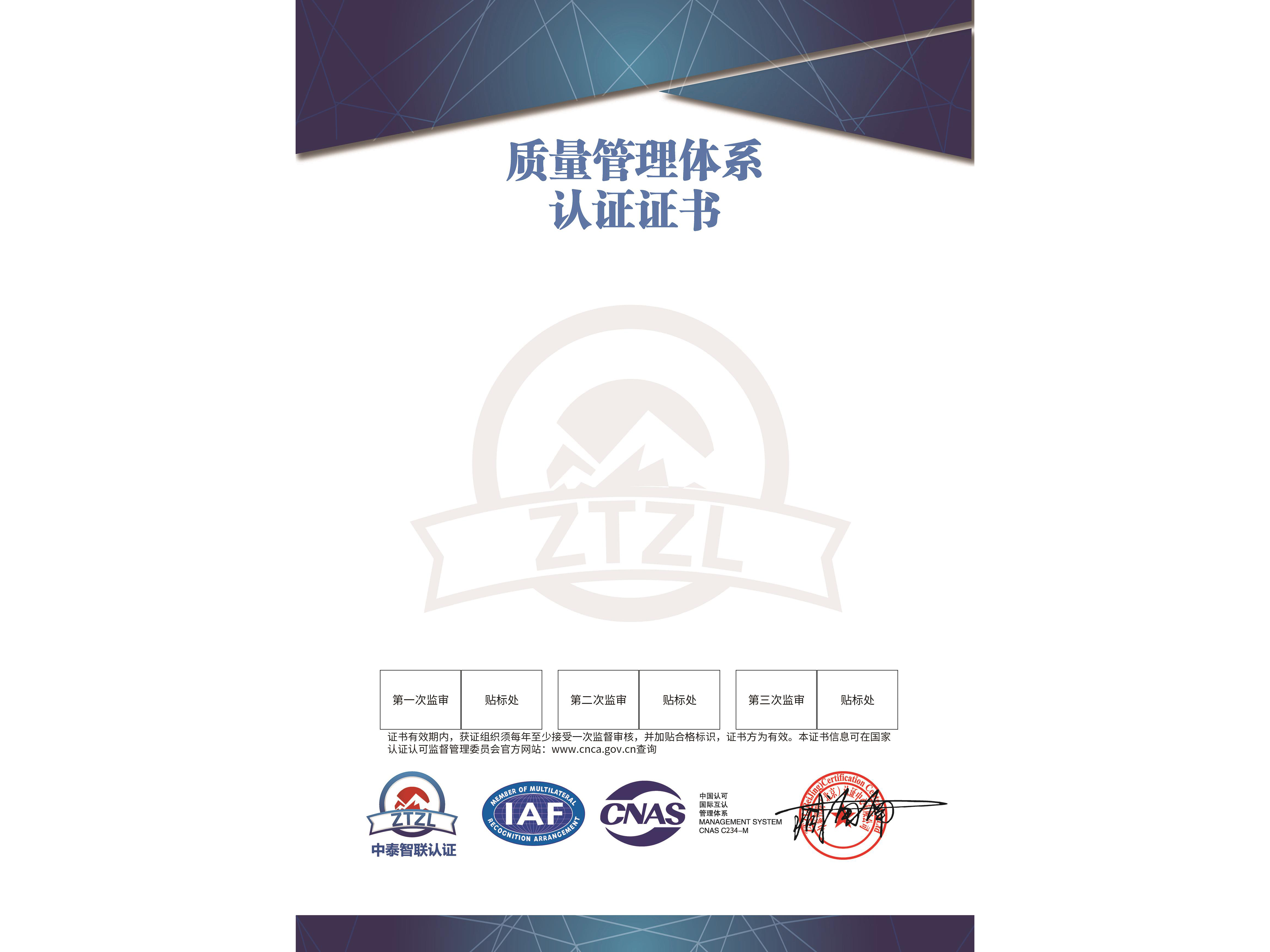 质量管理体系认证证书