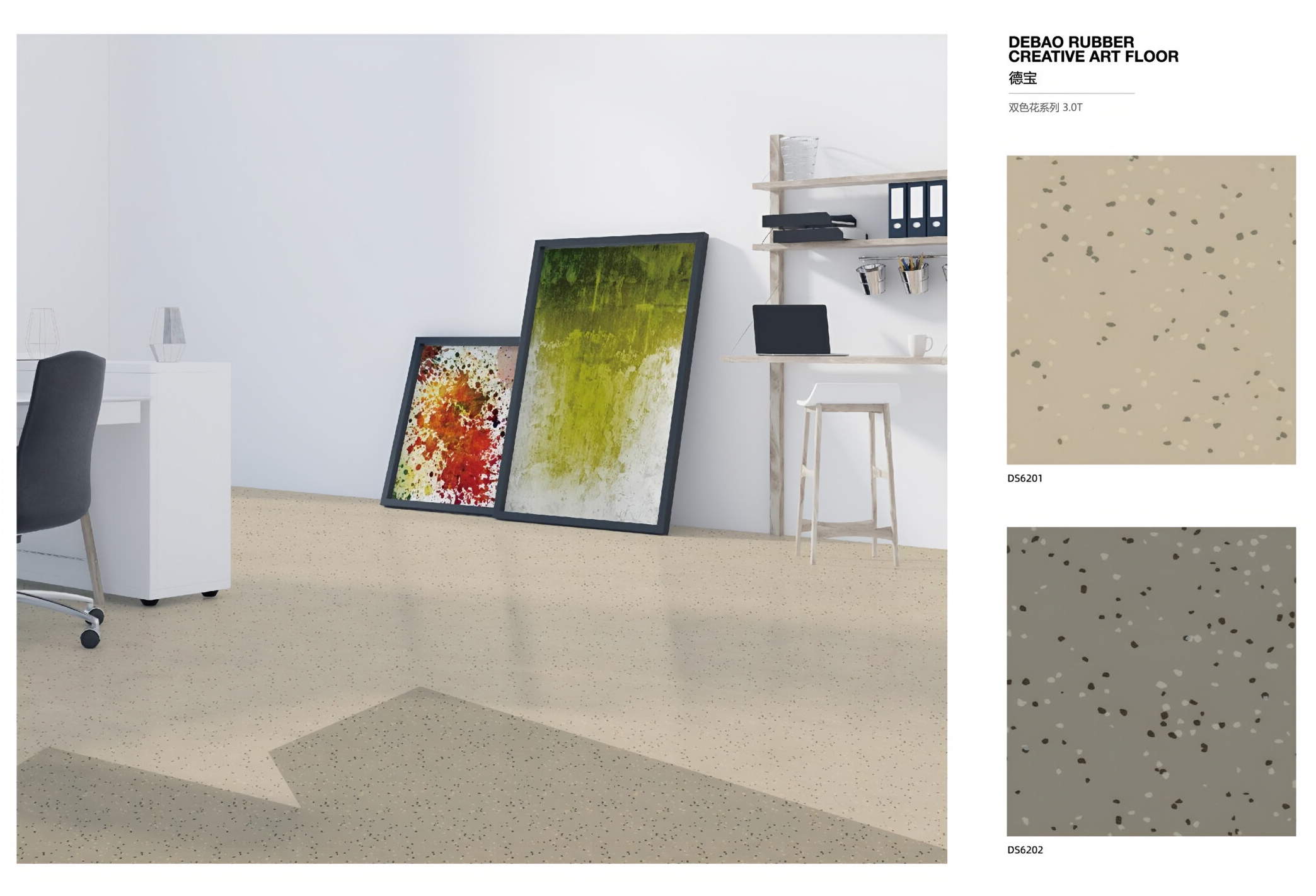 德宝双色花系列适用于高负荷环境的橡胶地板,基色由三种和谐的颜色组成,添加鲜明的颗粒花点,